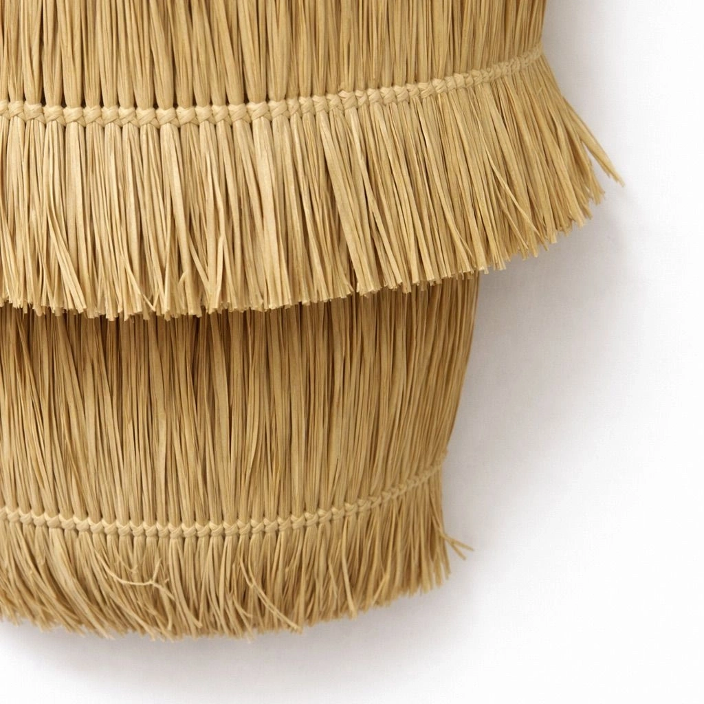 Japon Şapkası Rafya beyaz Püsküllü Avize çap 50