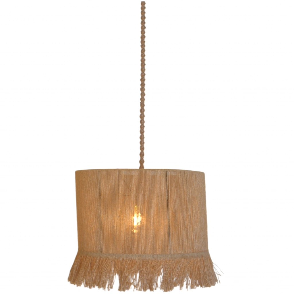 Jüt Silindir Avize, sade ve şık tasarımıyla doğal malzemelerin estetiğini yansıtan zarif bir aydınlatma çözümüdür. Jüt iplerinin özenle işlenmesiyle üretilen bu avize, silindirik formu sayesinde mekânlarınıza modern bir hava katarken, doğal dokusu ile sıcak ve davetkar bir atmosfer oluşturur.