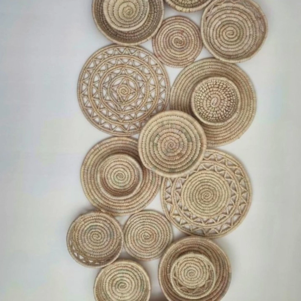 Oreganos hasır duvar tabağı seti _ 18'li set (palmiye yaprağı)3 adet 40 cm 4 adet 30cm 4 adet 25cm 4 adet 20cm 3 adet -